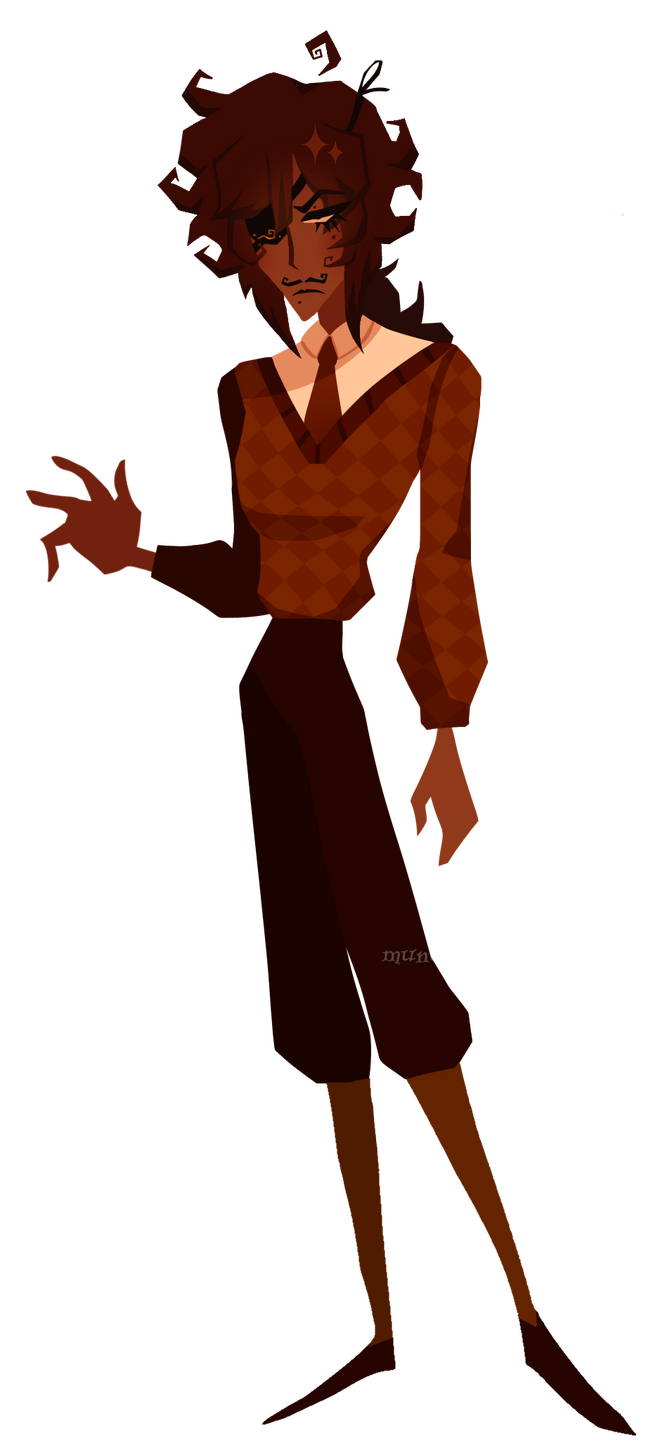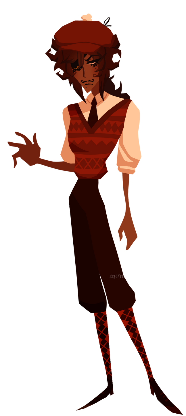 Cheekily nicknamed “Fisticuffs” by their employeress. Aloof and laconic, yet overconfident, they are not above demands and scalding remarks, and does not harbour respect for anyone they deem below them.. which, of course, is just about everyone. The only person they are willing to engage in conversation with is their employeress, that of which they are fiercely overprotective.They are known for being stoic; their emaciated face that betrays little to no expression. Despite this, there seems to be an ever-present air of paranoia to their character, as if they are constantly being watched. In regards to things they do enjoy (a rarity in itself), Fifi is fond of the finer things, i.e opera, interior design, and painting. They love pigeons and are a proud parent of about twenty.Fifi cannot help but feel as if Vanny has seen something she shouldn’t have. If push comes to shove, perhaps they’ll have something to say about it. Seeing is not always believing, after all, lest your eyes betray you.